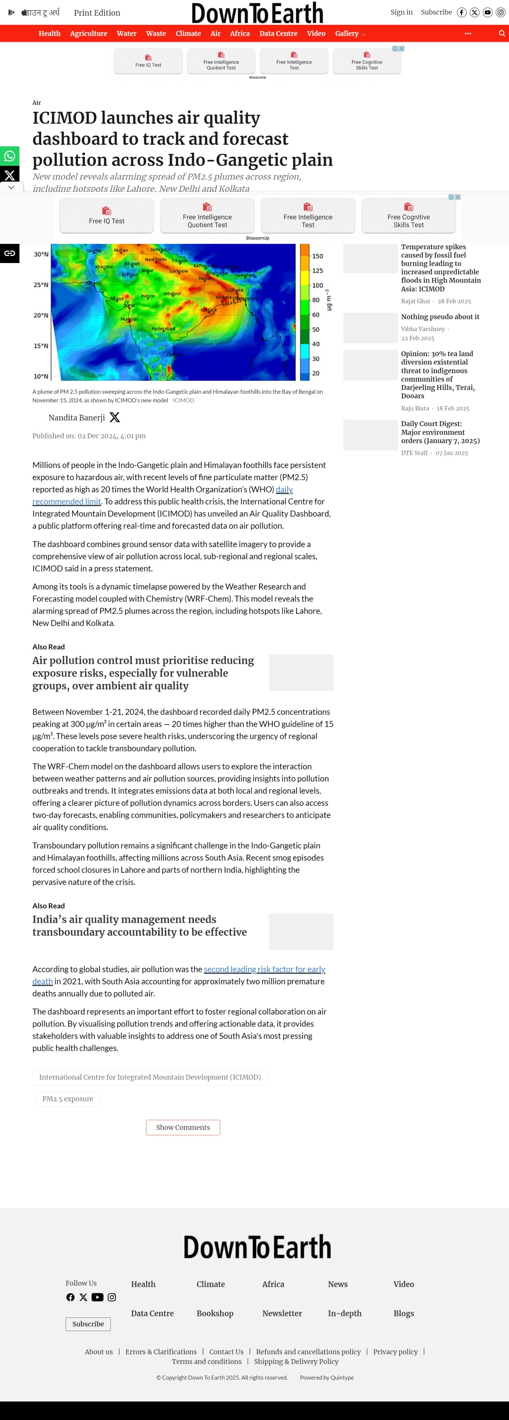 ICIMOD launches air quality dashboard to track and forecast pollution across Indo-Gangetic plain